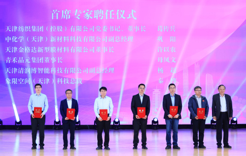 天津纺织集团(控股)有限公司党委书记、董事长葛传兵,中化学(天津)新材料科技有限公司副总经理巩阳,天津金格达新型膜材料有限公司董事长许以农,青禾晶元集团董事长母凤文,天津清润博智能科技有限公司副总经理杨超,象限空间(天津)科技有限公司董事长秦博受聘学校首席专家,新紫光集团联席总裁陈杰受聘首席科学家。姜勇为他们颁发聘书。